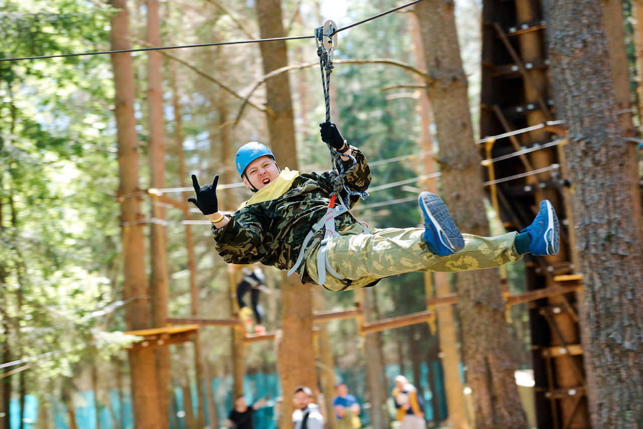 Экстремальный спуск на троллее высотой17 метров и протяженностью 300 метров!