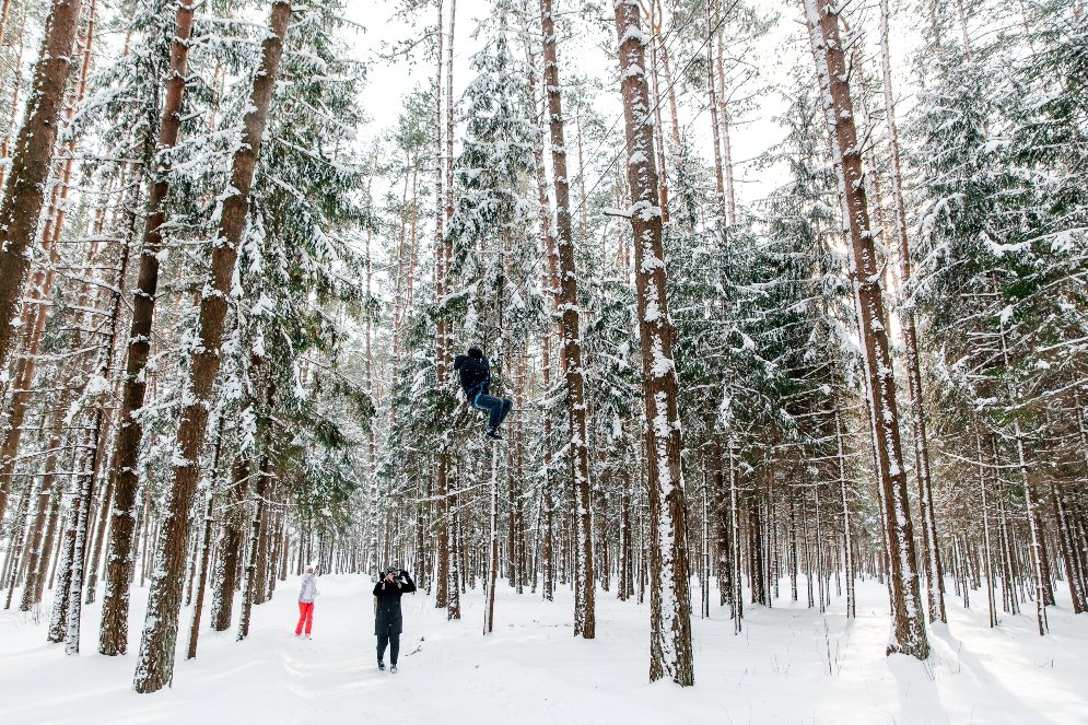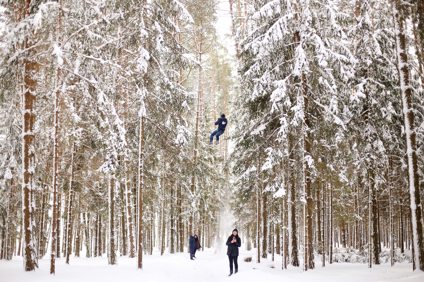 Спуск производится с 17 метровой высоты с специально оборудованной площадки на сосновом дереве. Протяженность спуска 300 метров.